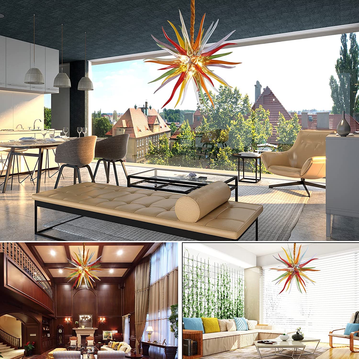 A chandelier is more than just a way to light a room - it's a statement. The colorful sunburst blown glass chandelier have a unique ability to tastefully makeover any space, by instantly incorporating a sense of refinement. Luxury chandeliers can be incorporated into any room of your home. Nothing has the power to revamp a tired space like a chandelier. Rather than investing the time and effort in the complete overhaul of a room that seems like it's lacking something, change its entire look and feel with a chandelier. You'll be amazed at how one seemingly small adjustment can make a world of difference.