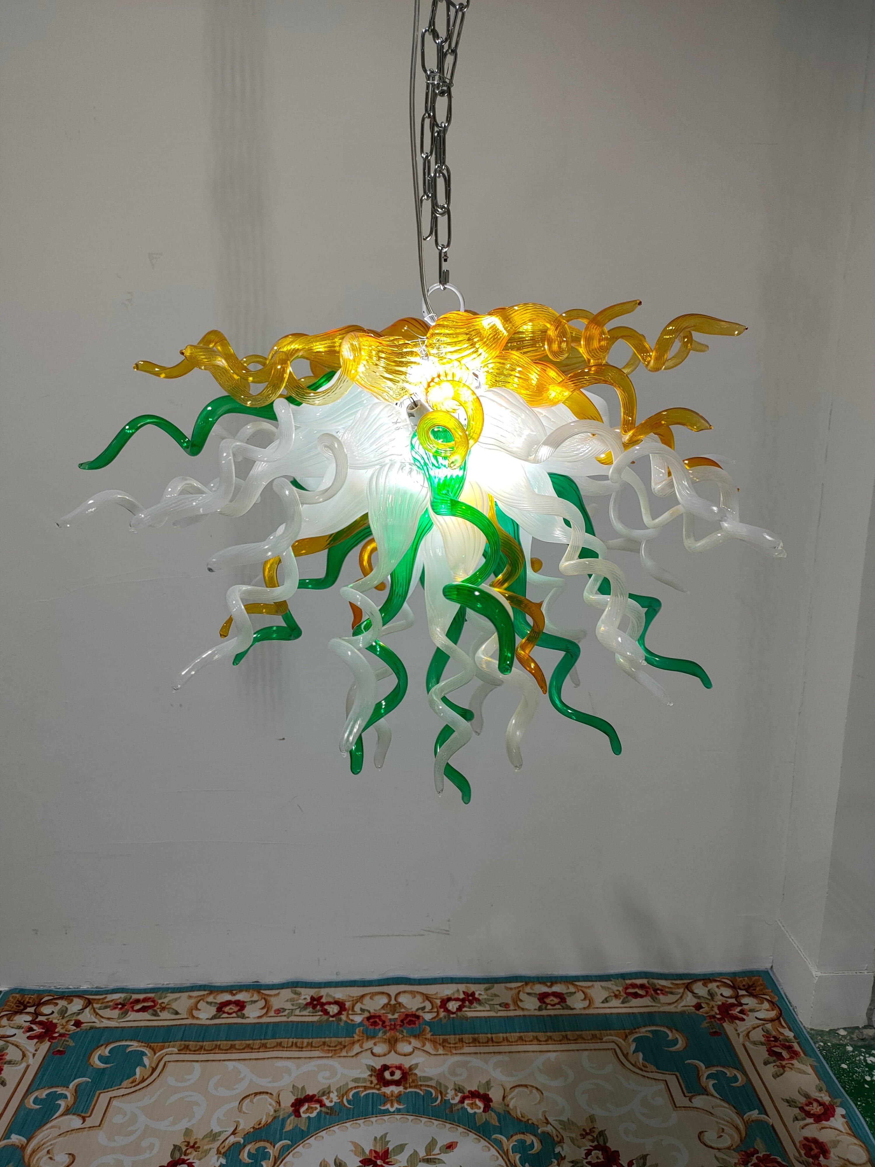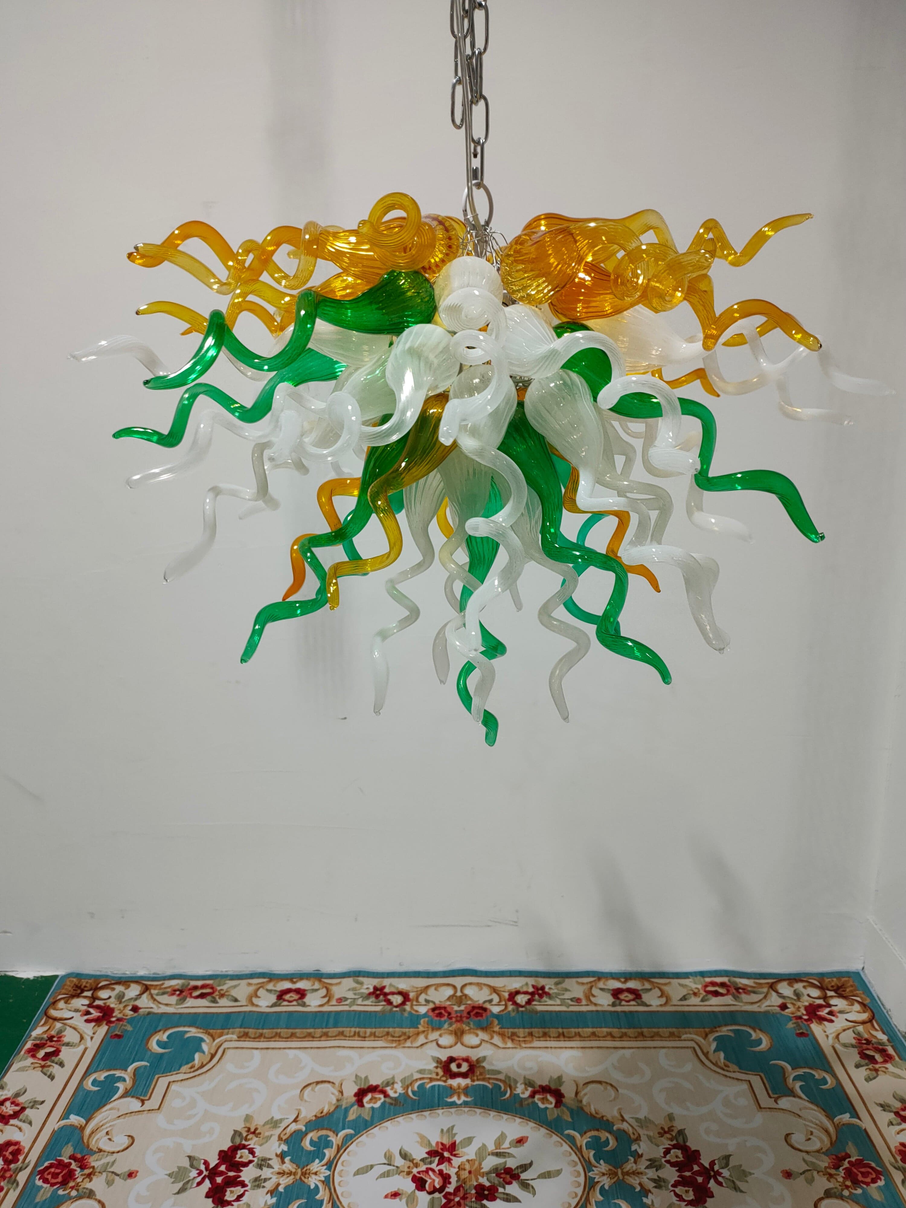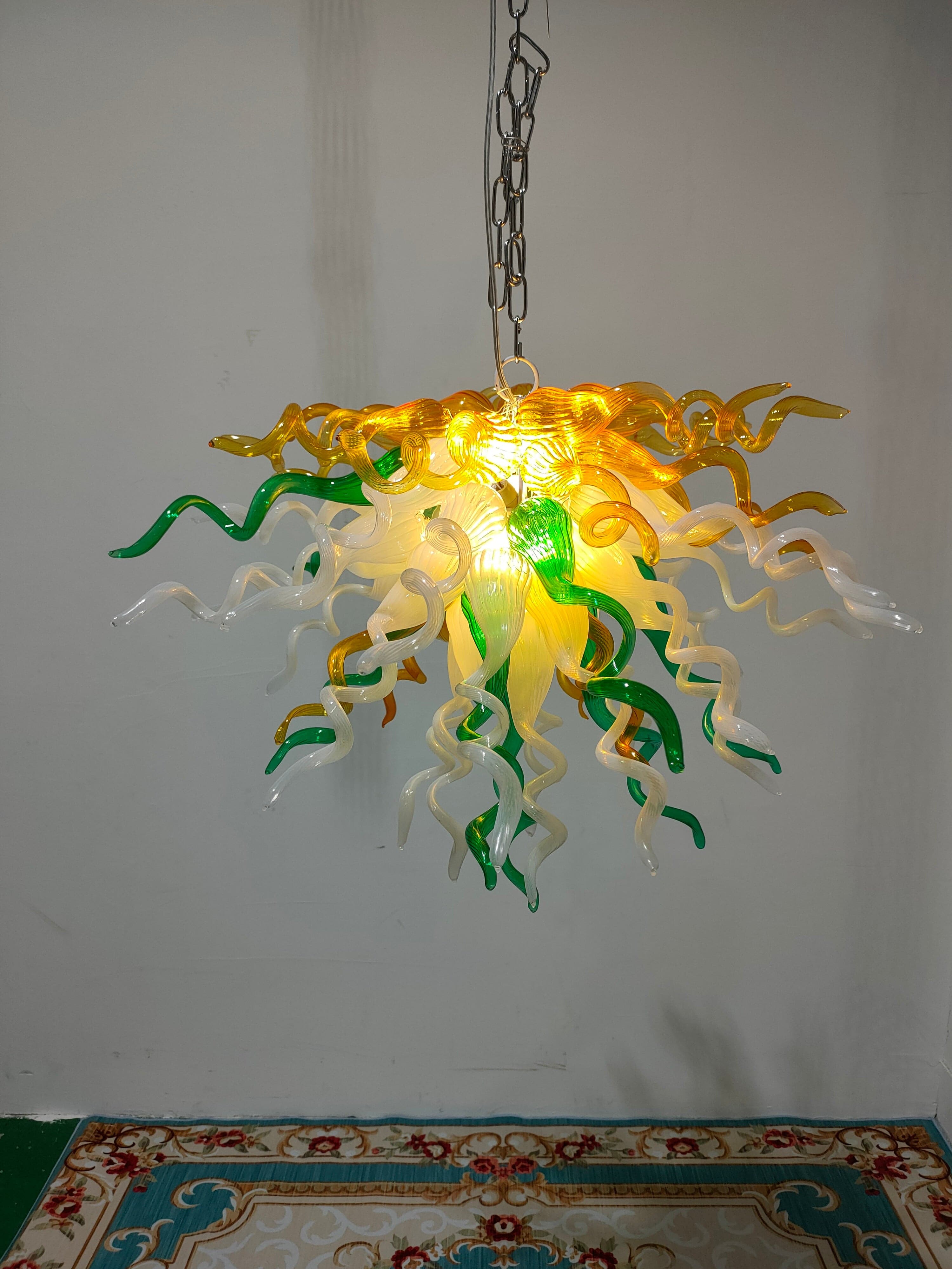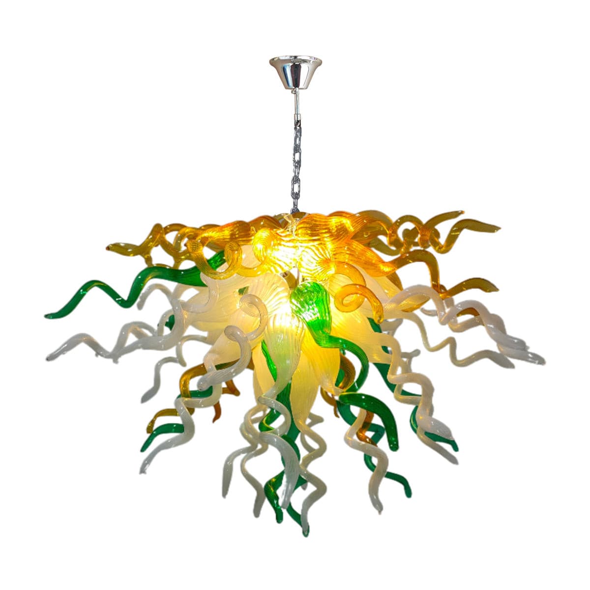 Transform your space with this breathtaking handcrafted colorful modern blown glass chandelier ceiling lights , showcasing a vibrant blend of green, golden, and white spirals. Each piece is meticulously crafted by master artisans, ensuring a one-of-a-kind centerpiece for your home or business. Its dynamic and colorful design exudes elegance, making it ideal for modern living rooms, dining areas, or creative spaces. The chandelier's warm, glowing light complements its artistic appeal, creating an atmosphere of sophistication and style. Durable and easy to install, it's designed to elevate any interior.