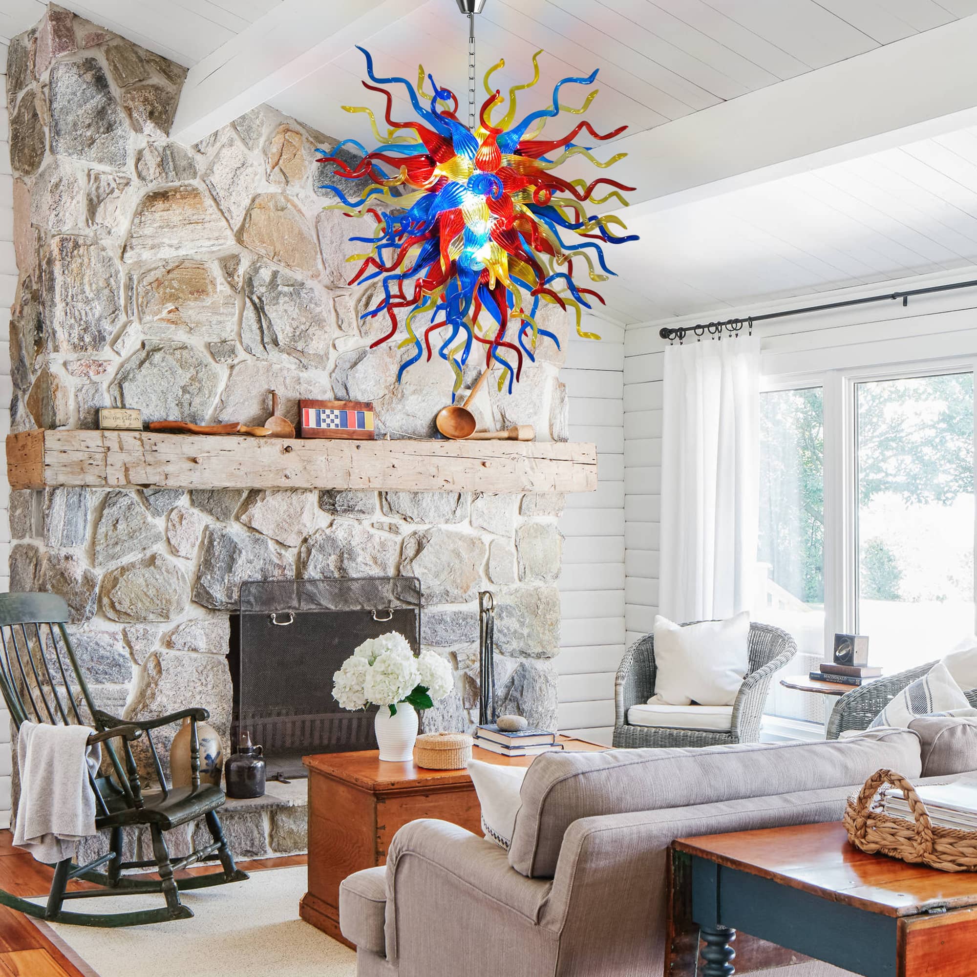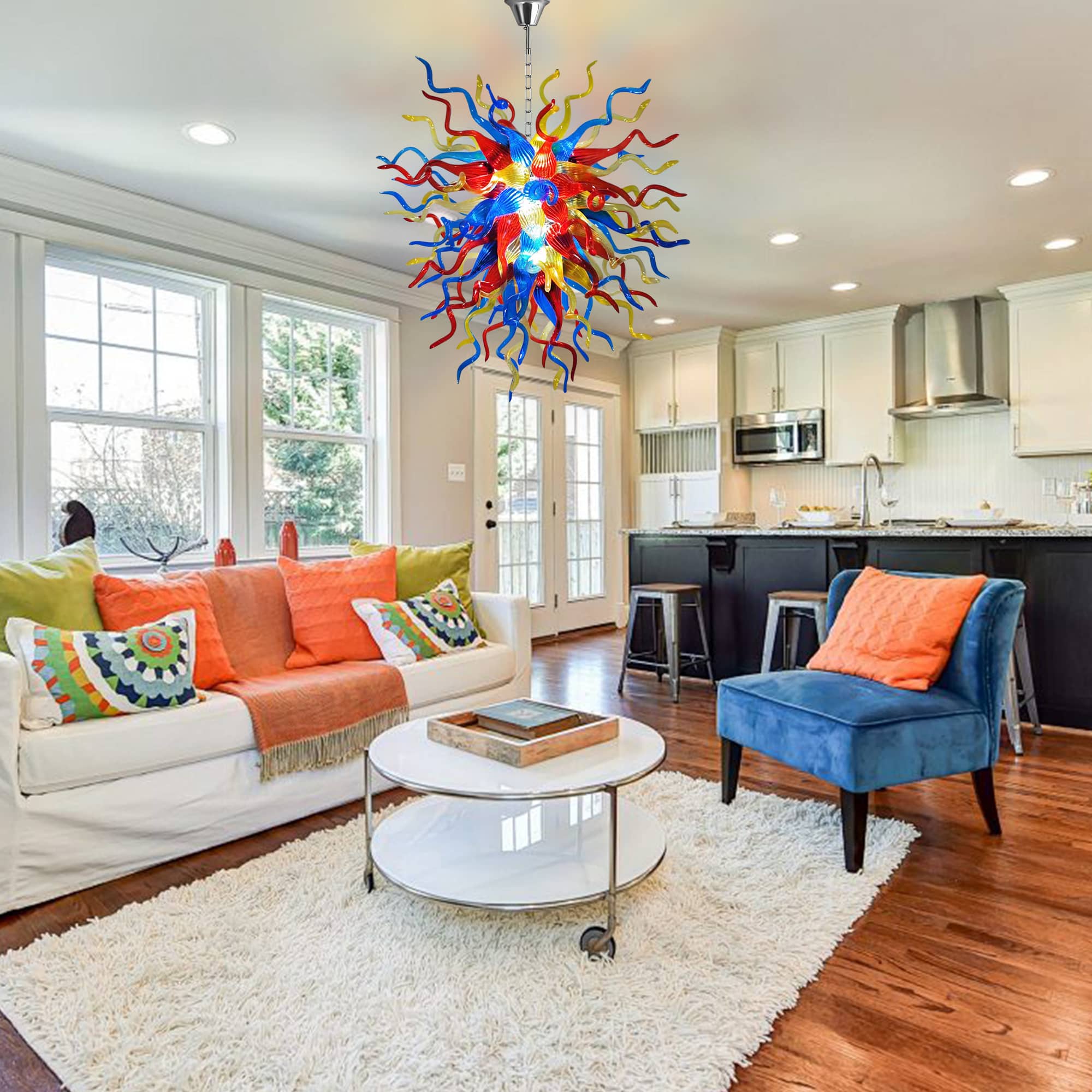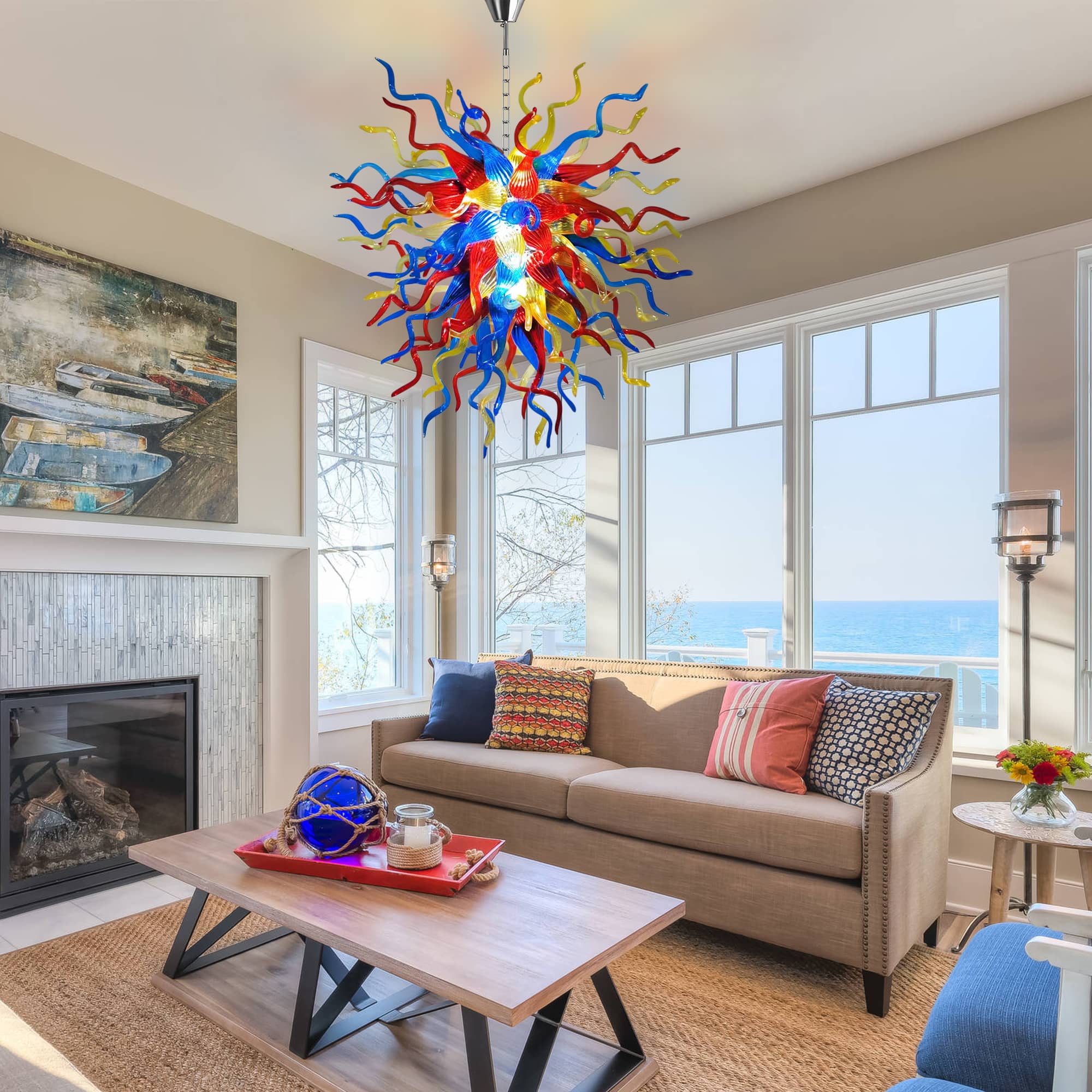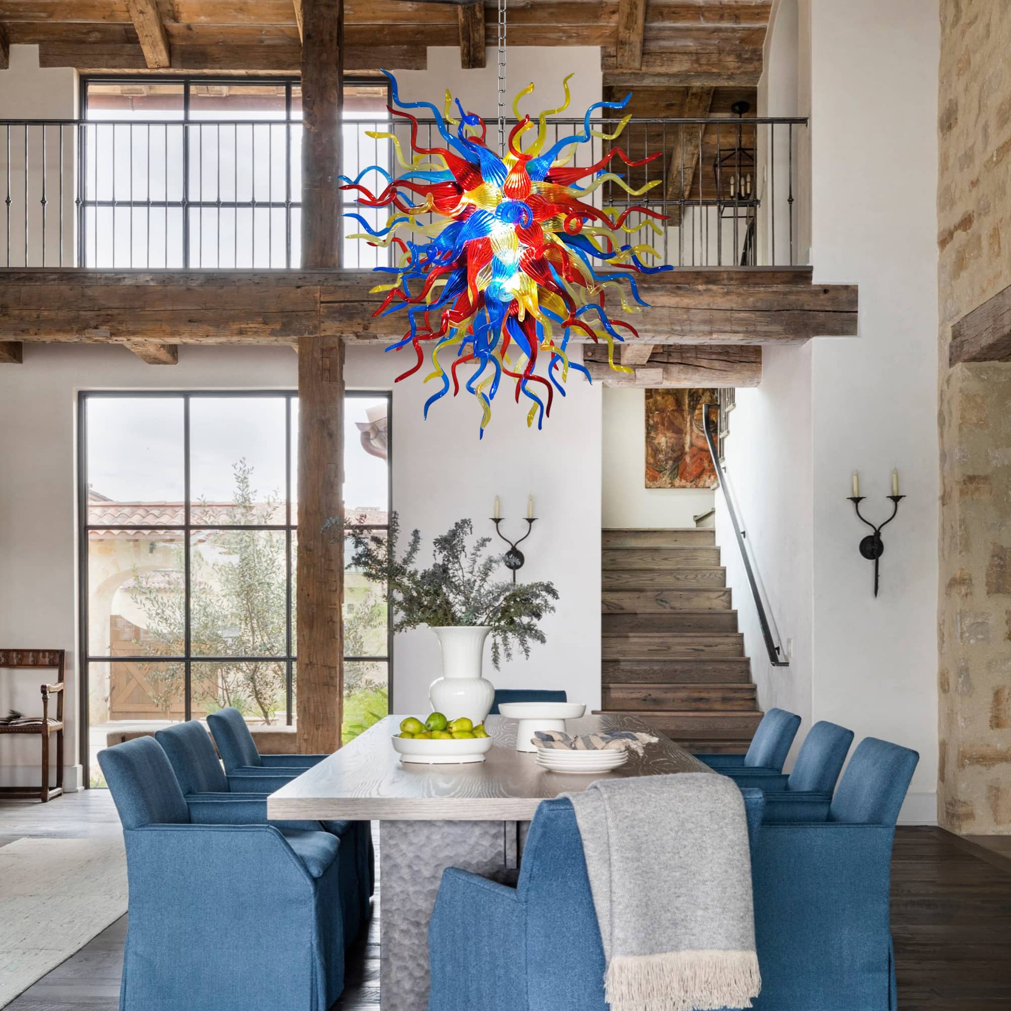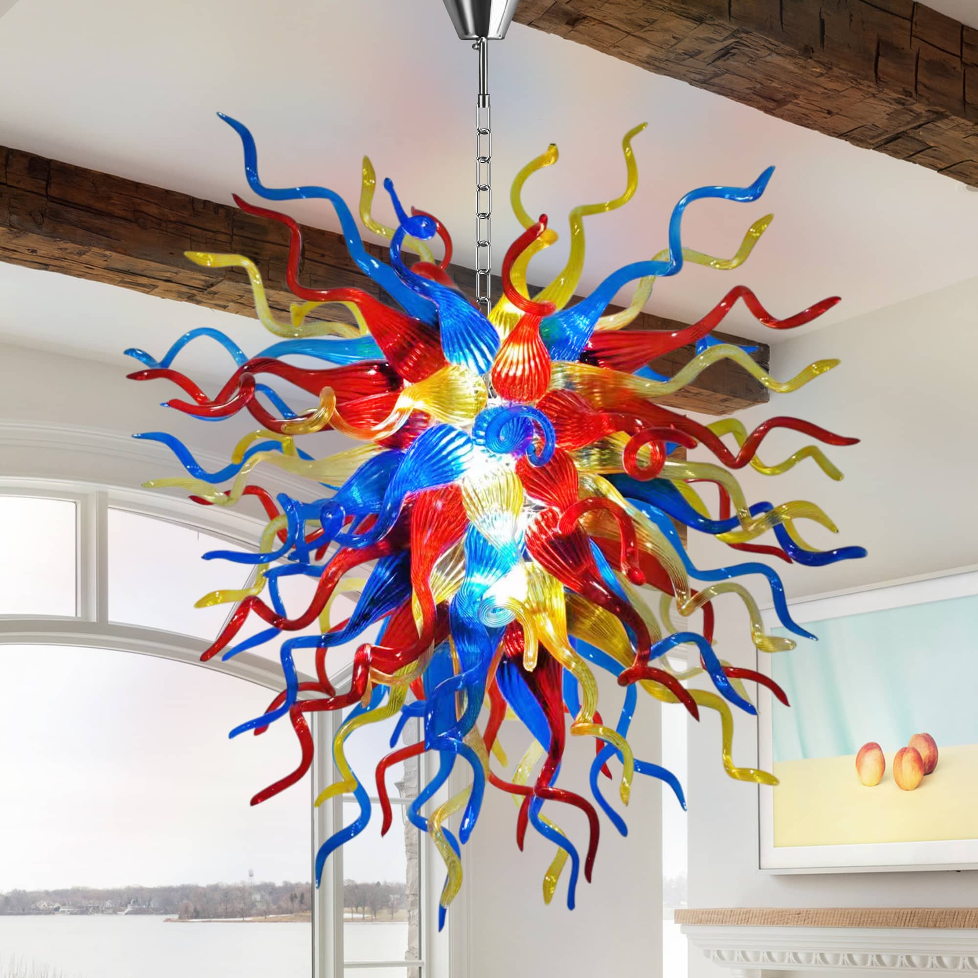 Colorful Blown Glass Chandelier – Chihuly Style Red Blue Yellow Art Pendant D28XH36inch