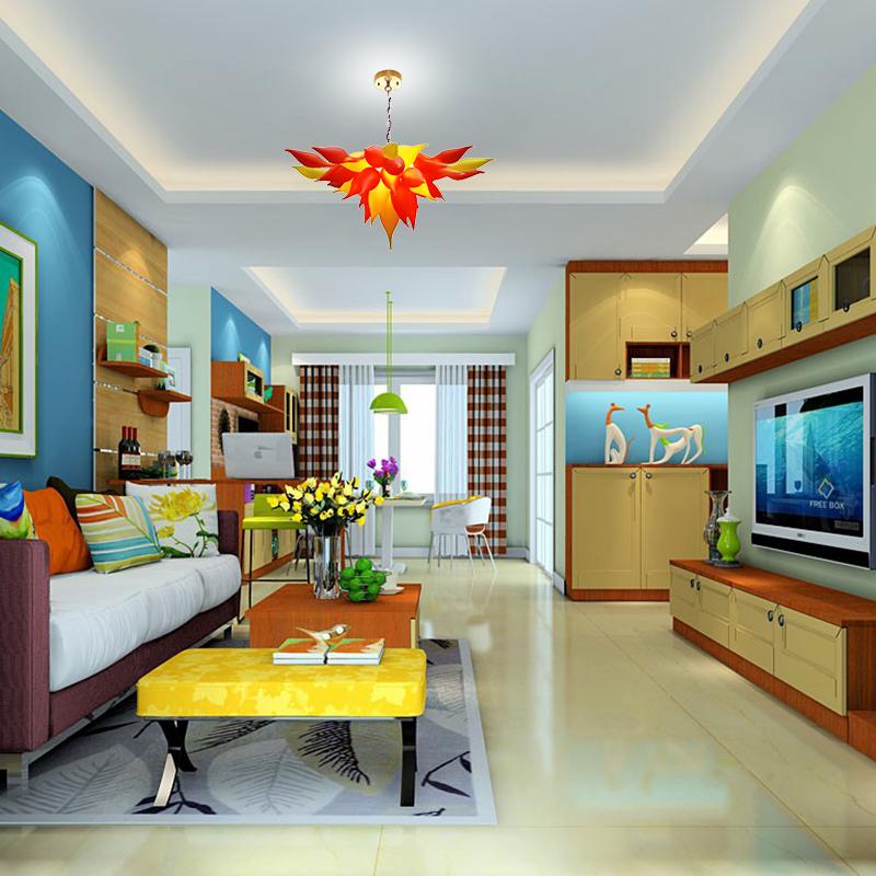 New Modern Chandelier Hand Blown Glass Red And Orange Color With LED