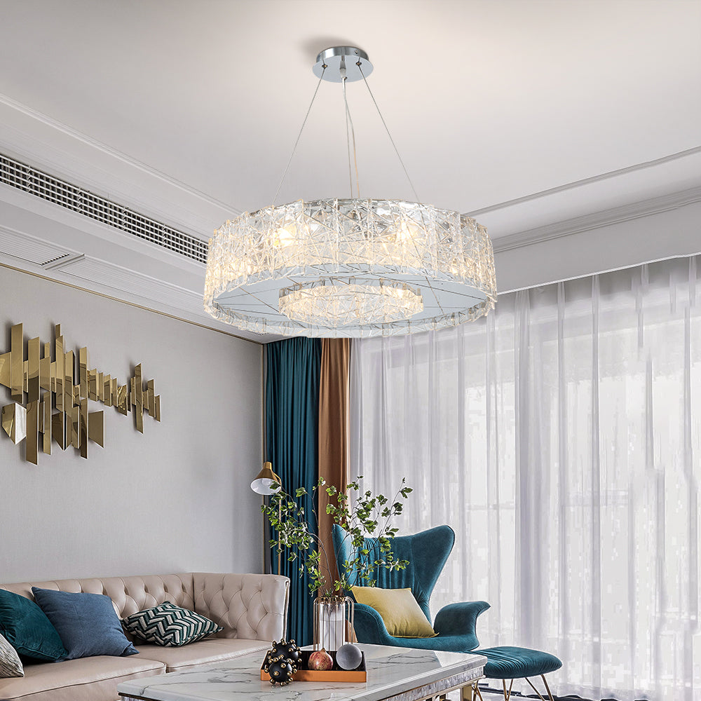 Bring style and class to your space with the modern round crystal glass chandelier. This piece radiates elegance and brings a modern day look any room, but mainly the living room. Its round shapes, contemporary base and light handles give you a bold, powerful feel yet keeps your living room beautiful with it’s gorgeous shape.