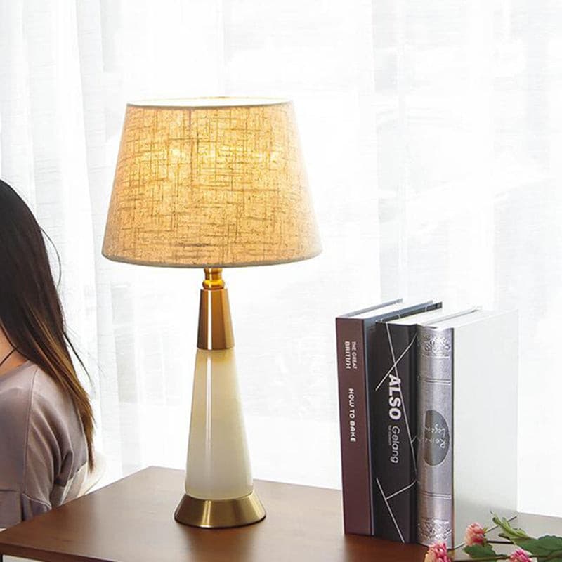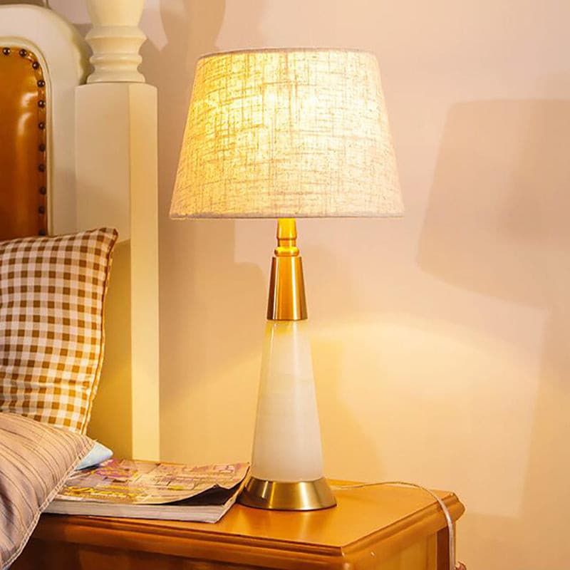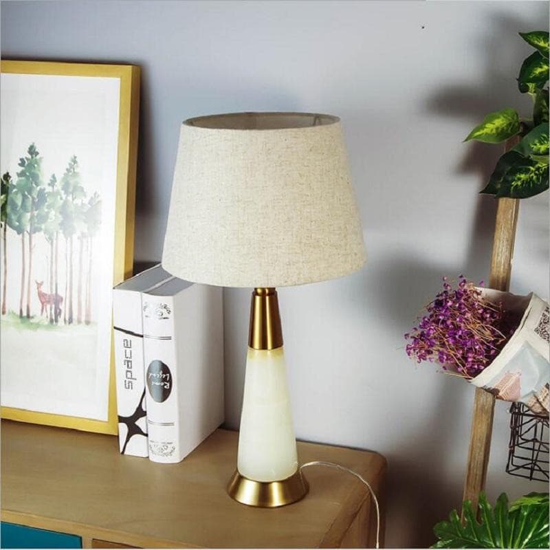 Modern Table Lamp White Dolomite Golen Metal Fabric Shade