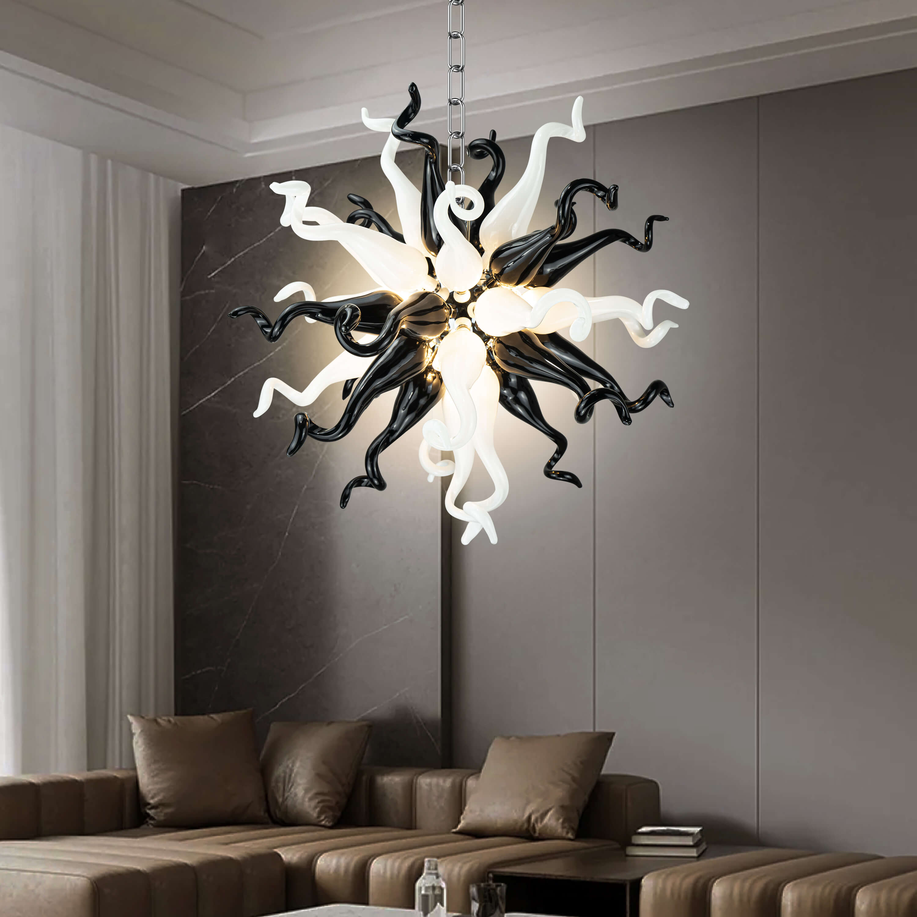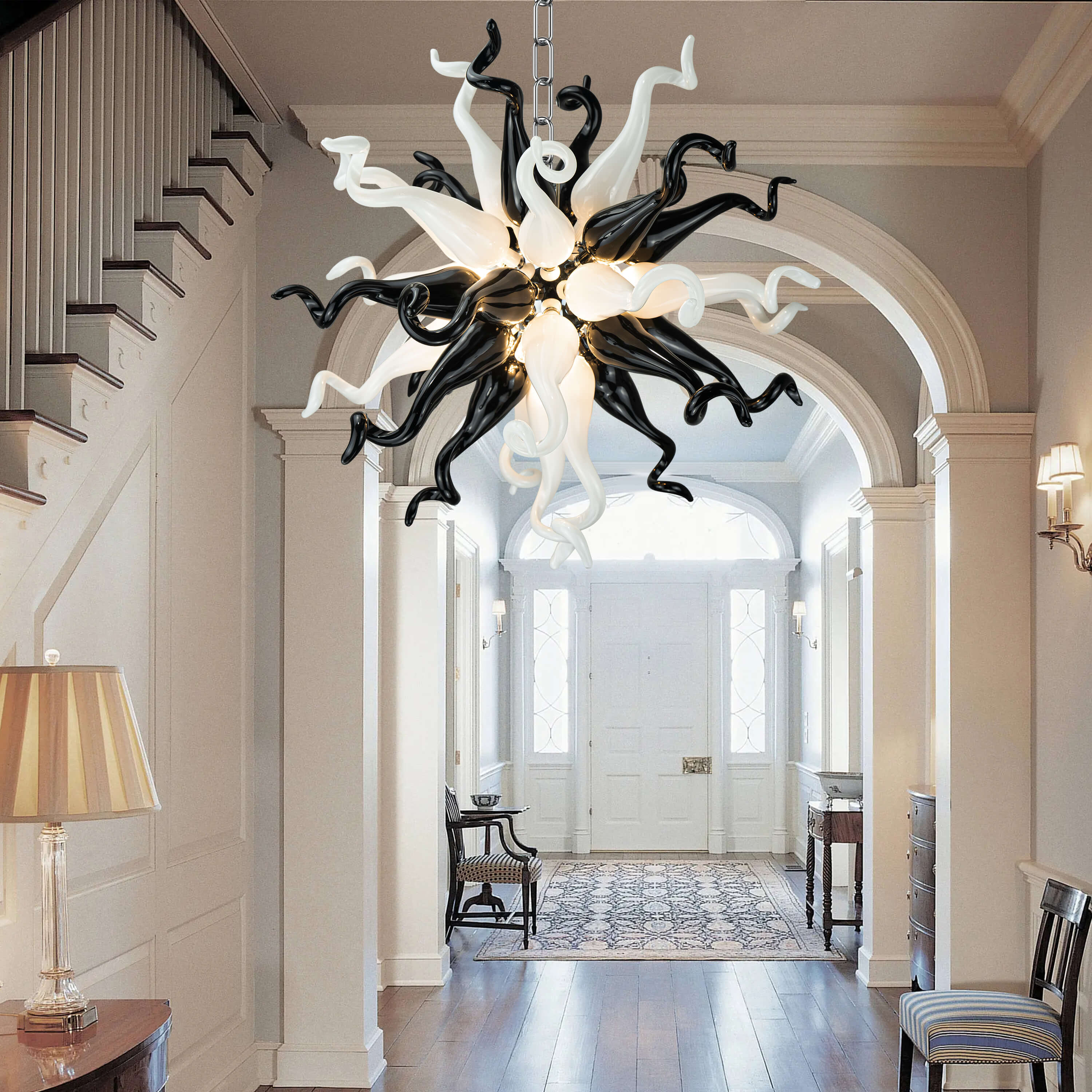 Starburst Blown Glass Chandelier Black And White Hand Blown LR1501