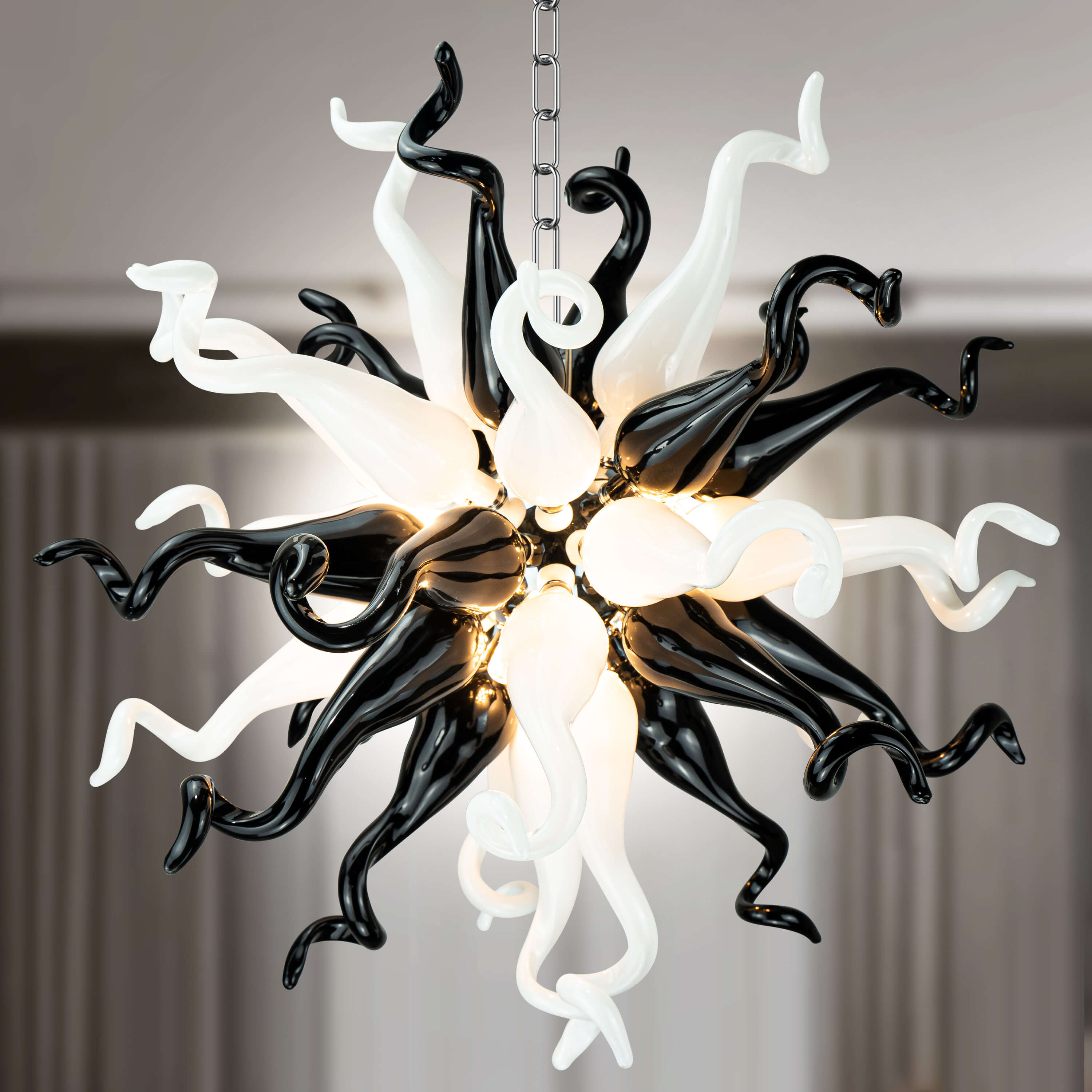 Starburst Blown Glass Chandelier Black And White Hand Blown
