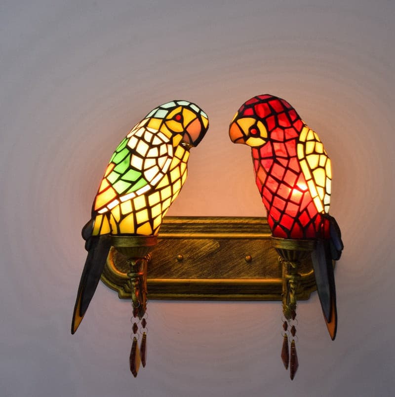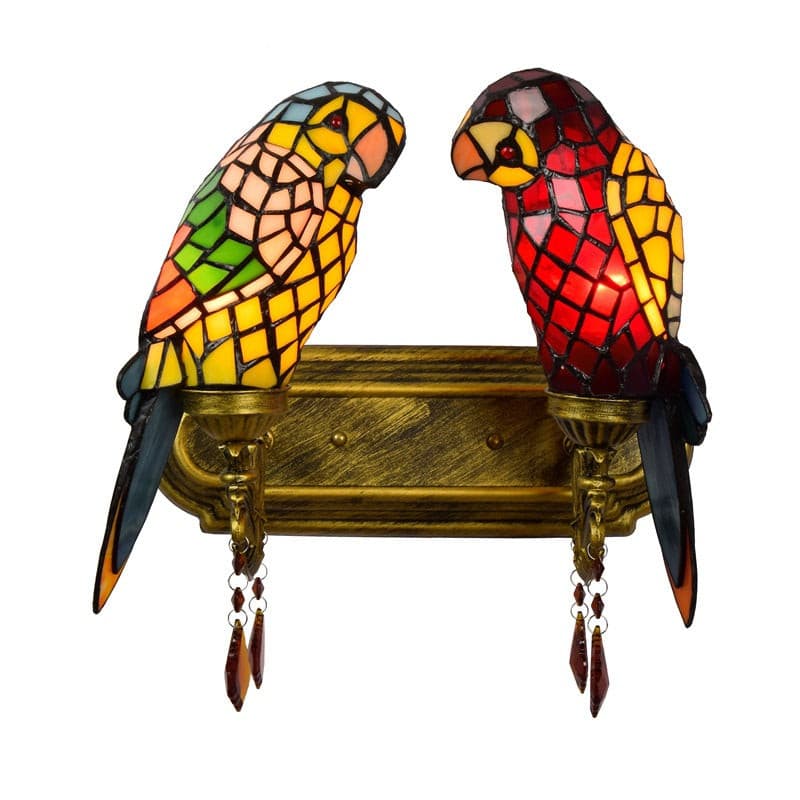Wall Sconce Stained Glass Retro Tiffany Style Double Birds