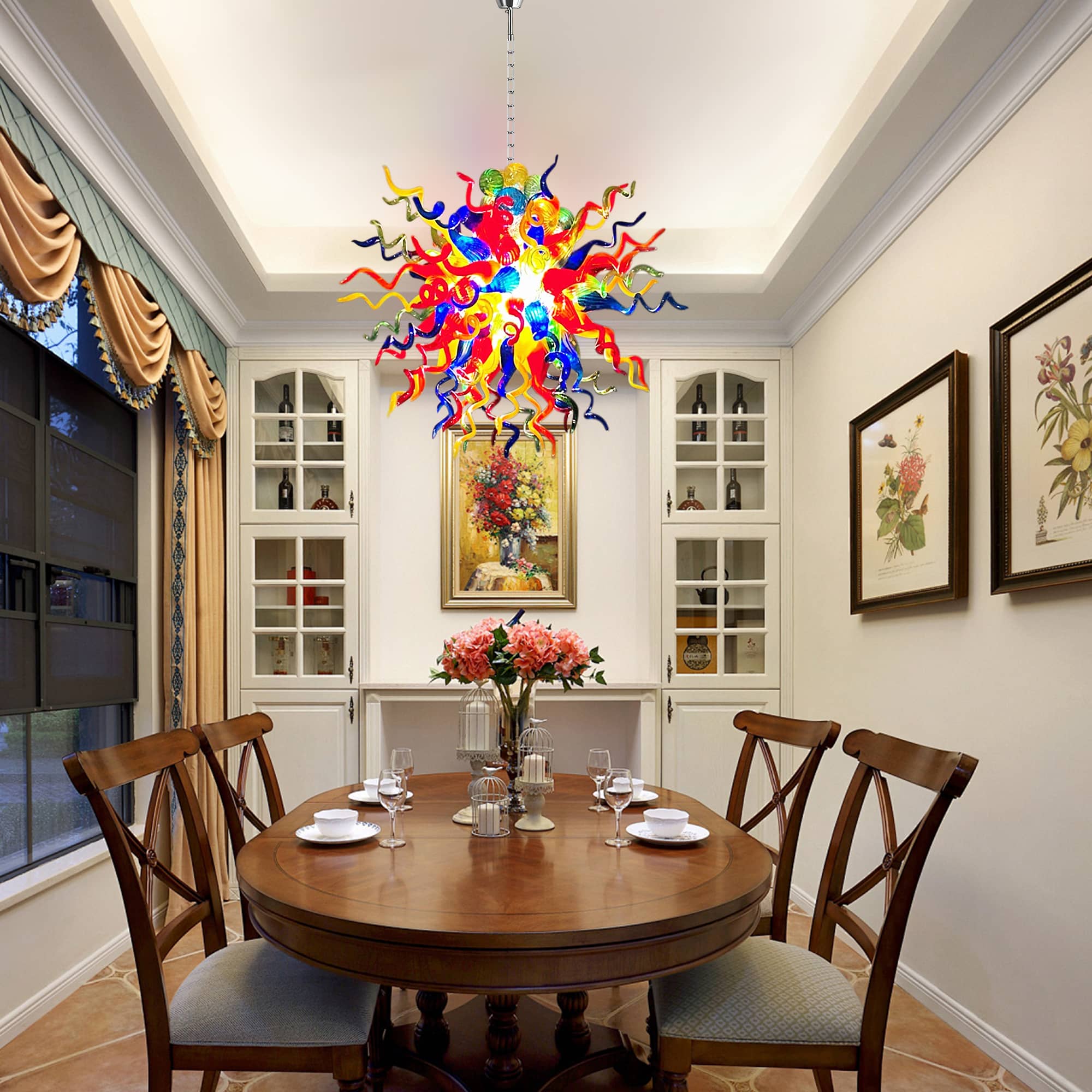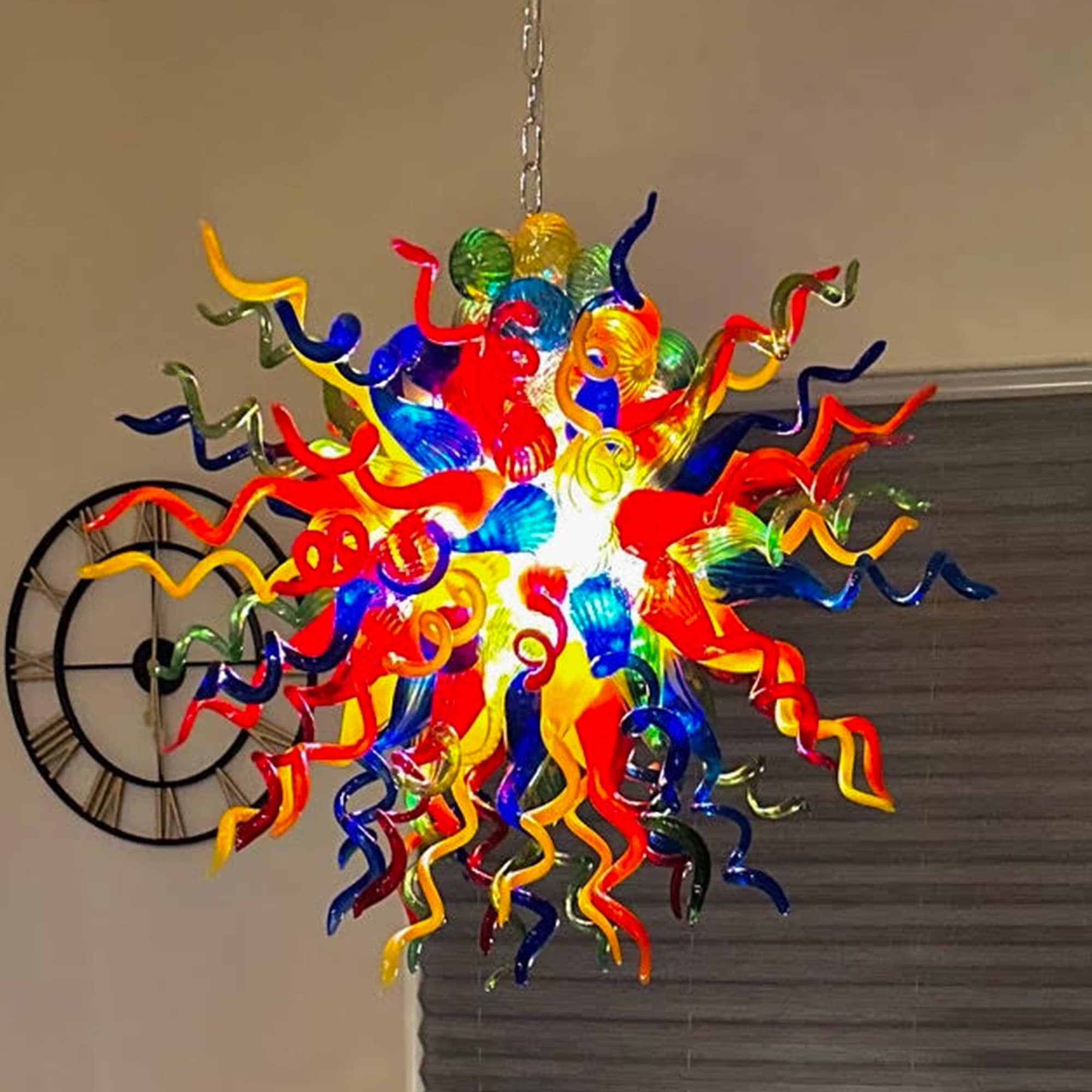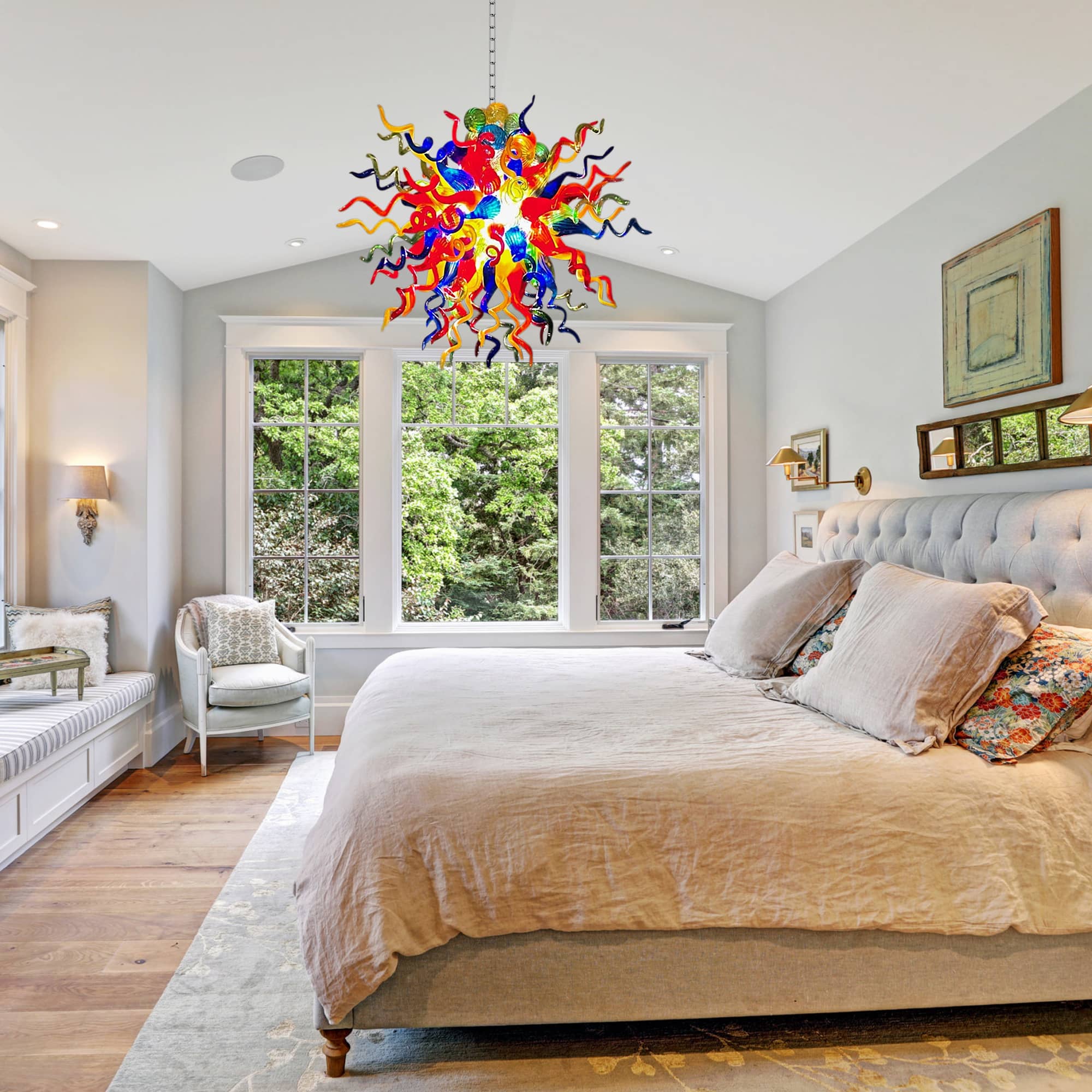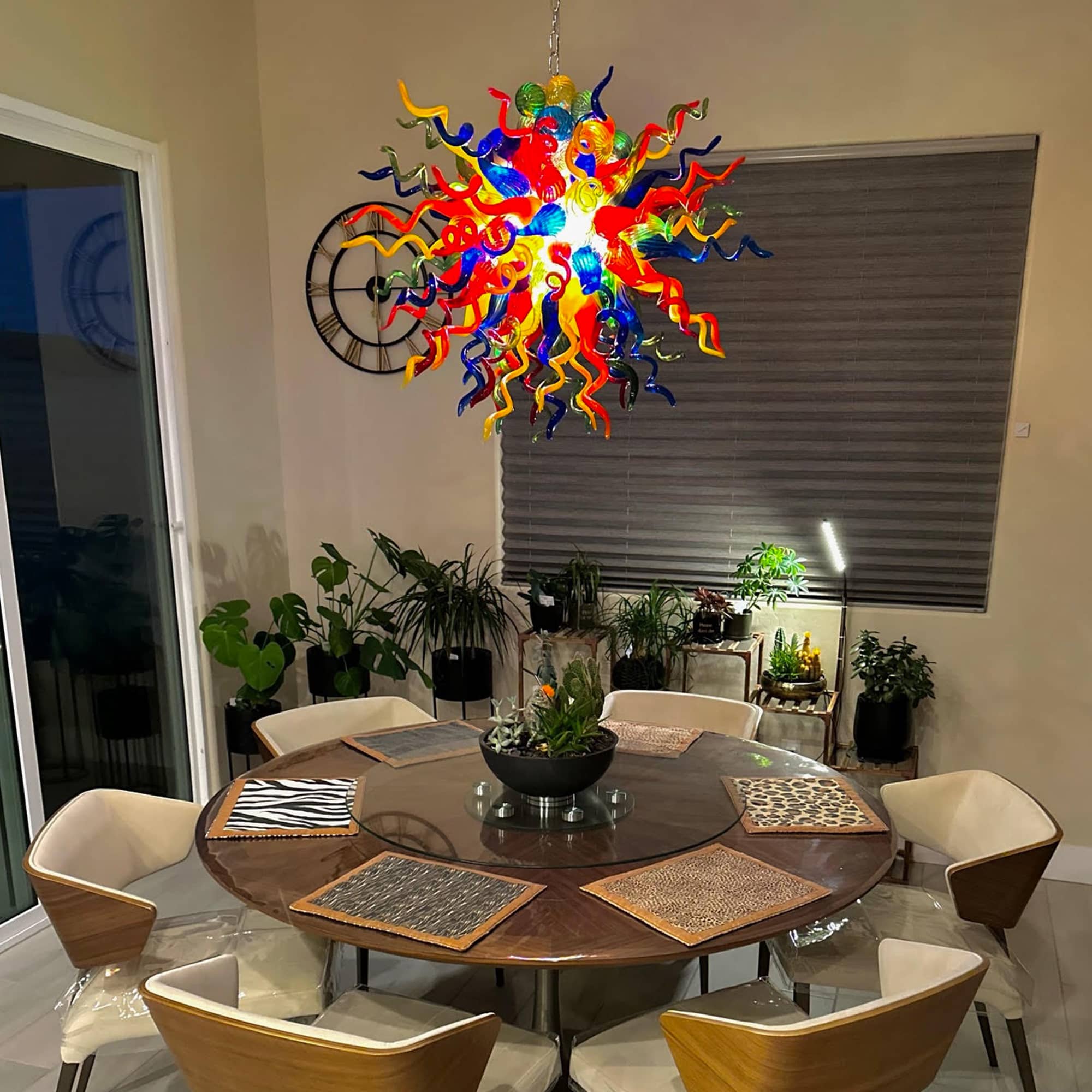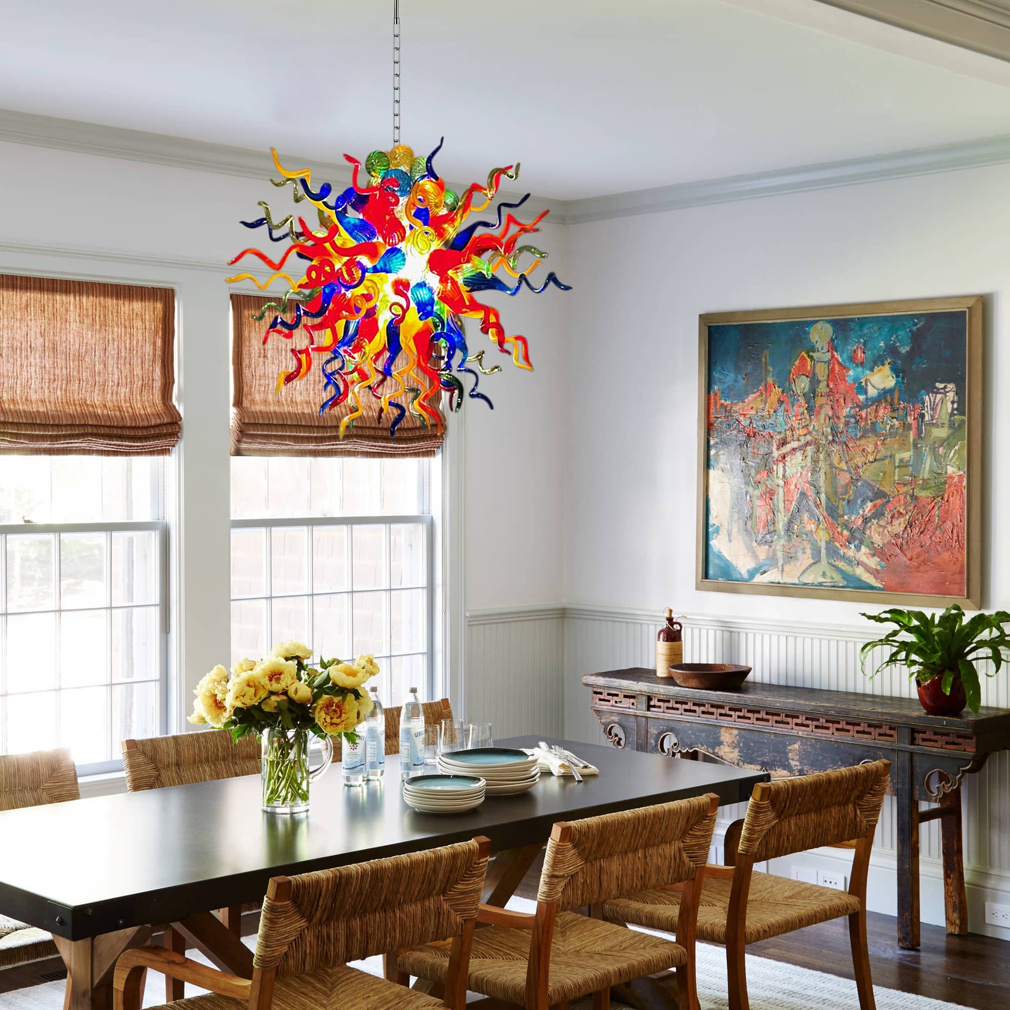 Chihuly Style Colorburst Blown Glass Chandelier D36"-A Kaleidoscope of Light and Art LRC011