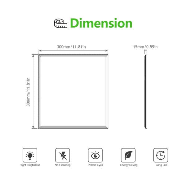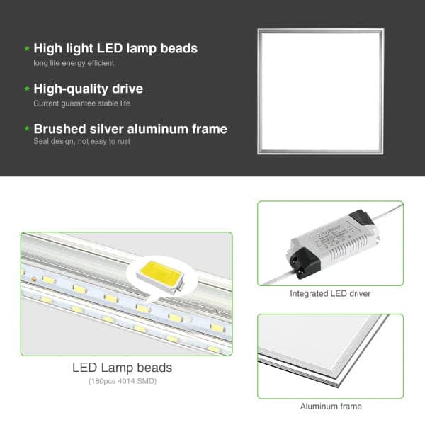 The 30,000-hour LED panel, side light source (four-sided light) and 120-degree beam angle provide perfect and even light transmission.