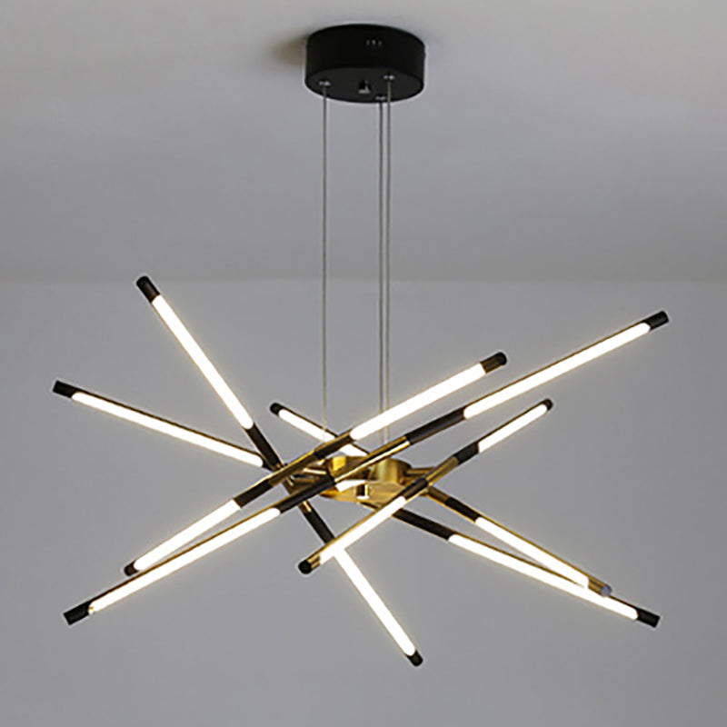 The ultimate in modern minimalism, the rotatable LED chandelier has streamlined, linear lengths which are staggered randomly to create this dramatic and oversized modern interpretation of a chandelier.