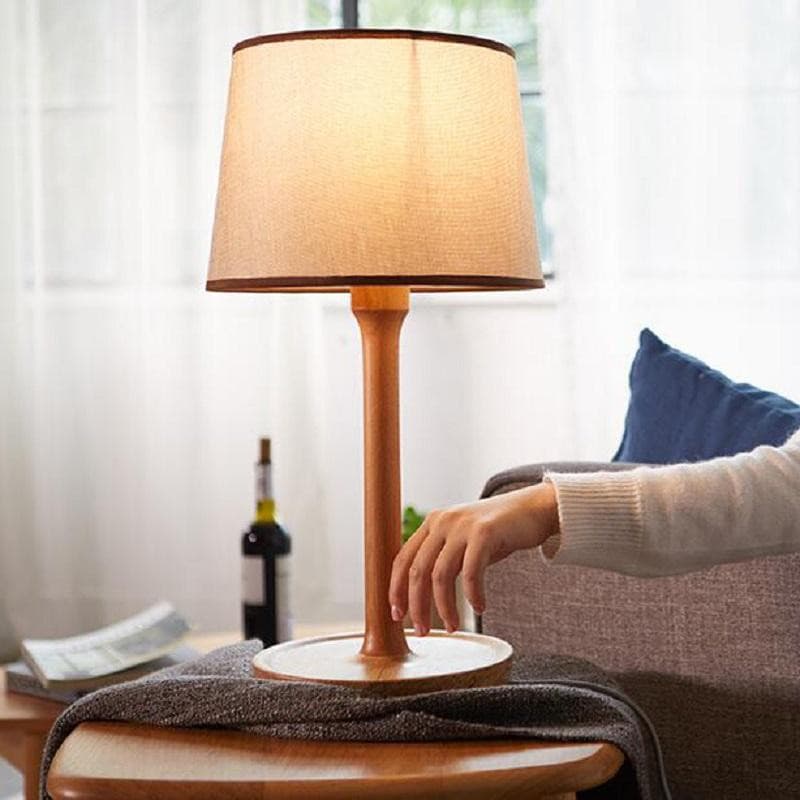 Modern Bedside Table Lamps Wooden Base Fabric Shade LRTL017